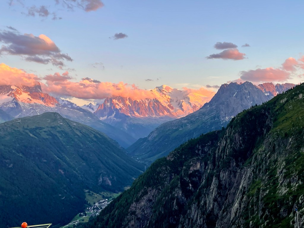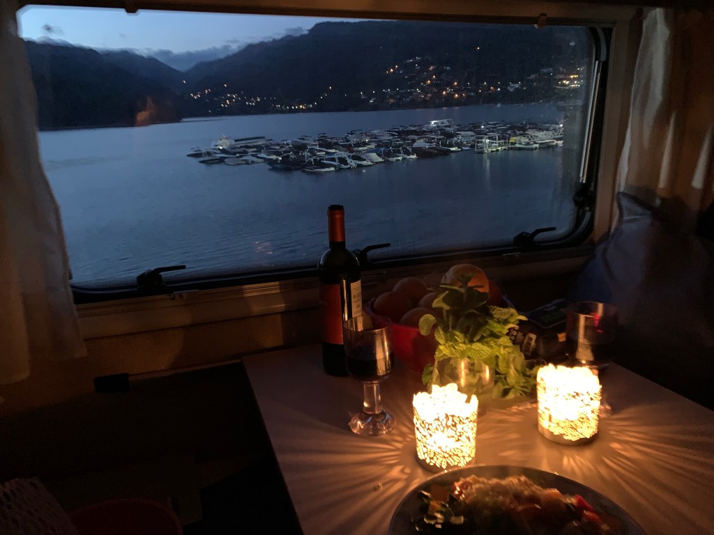And then, most unexpectedly, we were treated to a spectacular aerobatic display by the Patrouille de France – the French equivalent of the Red Arrows. They were magnificent in the evening light as the sun set and we enjoyed front row seats for their display. This display wasn’t scheduled until the next day and we think this must have been a rehearsal for that event.
