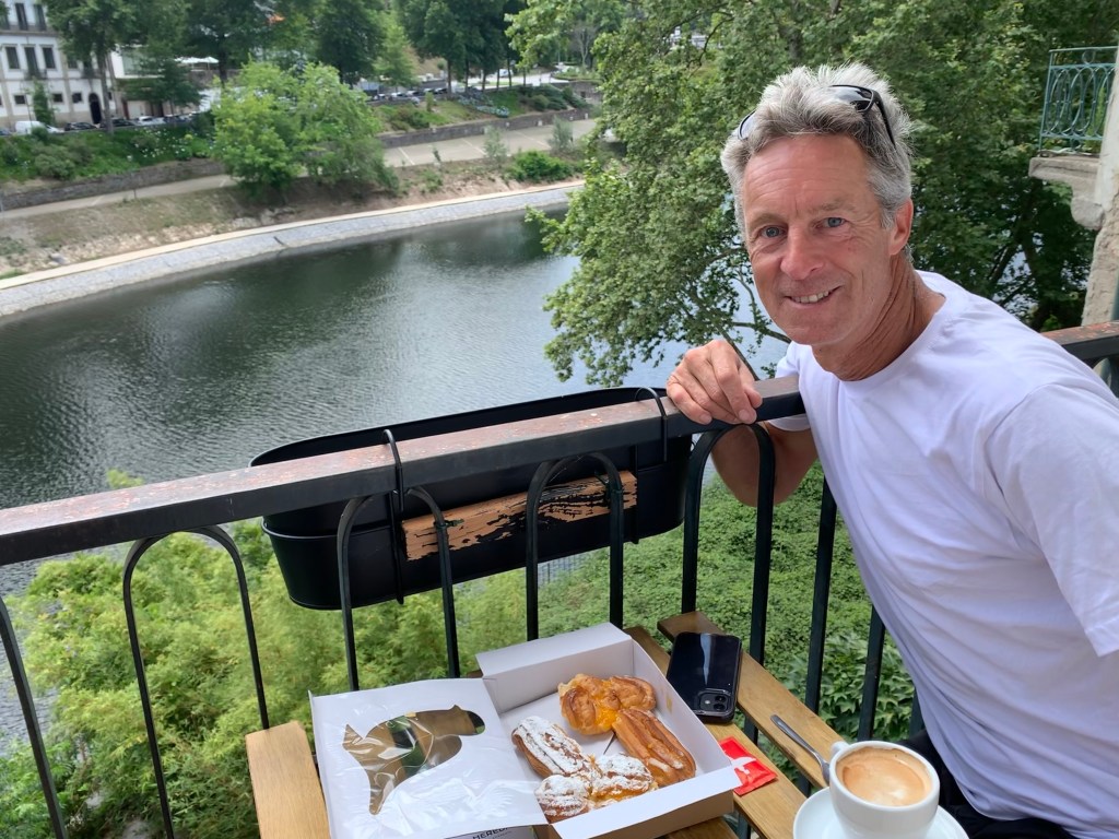 Our luck that evening continued when we decided to visit Caen which was at the centre of the Normandy campaign and was decimated. Having parked Skye up for the night, we took to our bikes and as we toured around this pretty town, we heard the unmistakable sound of pipes and drums drifting across the air. We honed in on this and found ourselves in front of the impressive Caen Hotel de Ville where there was a special reception for 10 British veterans – 25 made their way to France in total – who, by definition, were 98 years or older, many over 100. Sadly, not many of them are still alive and this 80th celebration will almost certainly be the last significant anniversary at which there are veterans in attendance. It was wonderful to see these extraordinary ex-servicemen who were so dignified and had all experienced and endured the horrors of war on our behalf all those years ago; an incredibly special and moving occasion.