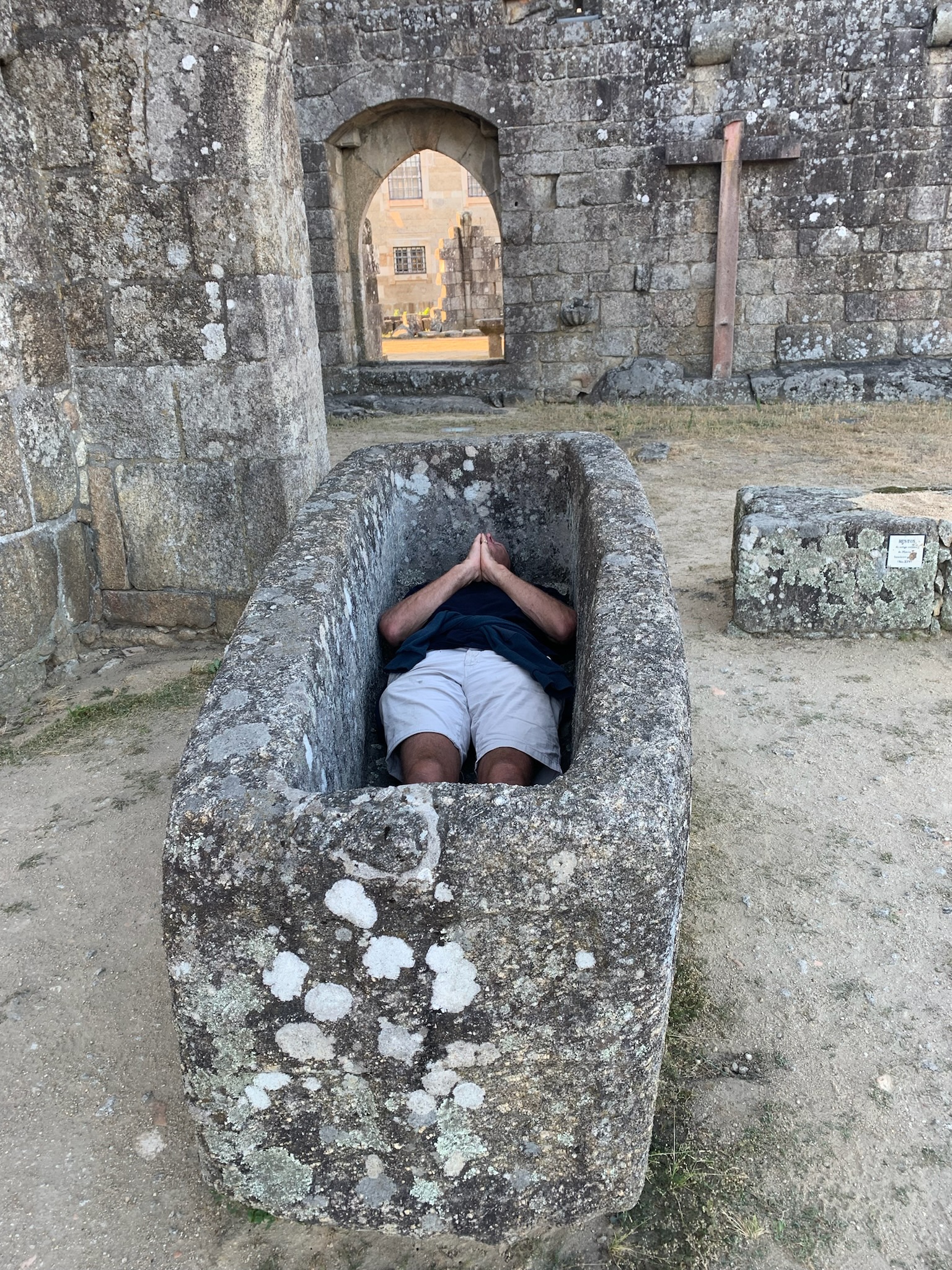 We then made our way to Vers sur Mer and visited the new British Normandy Memorial; only recently commissioned, it bears the names of all 22,442 people under British command who were killed in the Normandy Campaign. It really is the most beautifully designed memorial which sits high above Gold beach with magnificent views down across the Normandy coastline. We were pleased to find Uncle Ron’s name engraved on one of the pillars with his rank and age confirming that he was the most senior, and one of the oldest, servicemen to be killed in Normandy. A few days before, it had been the focus of the official D Day commemoration with the PM and President Macron, but when we visited, it was peaceful and we were able to wander around the site including in amongst the haunting silhouettes from the Standing with Giants display. This consisted of 1,475 statues – one for every serviceman killed on D Day itself. We had the luck to bump into this charity’s founder, Daniel Barton, and his wife as they were sorting through 22,000+ hand-knitted poppies donated to them by the WI. They are an extraordinary couple and an inspiration, who have singlehandedly set up this charity to honour the memory of all those who have been killed in war and now set up displays across Europe and beyond. To support them further, my family and I have bought a plaque in memory of my Uncle Ron which will remain at the British Normandy Memorial for at least five years.