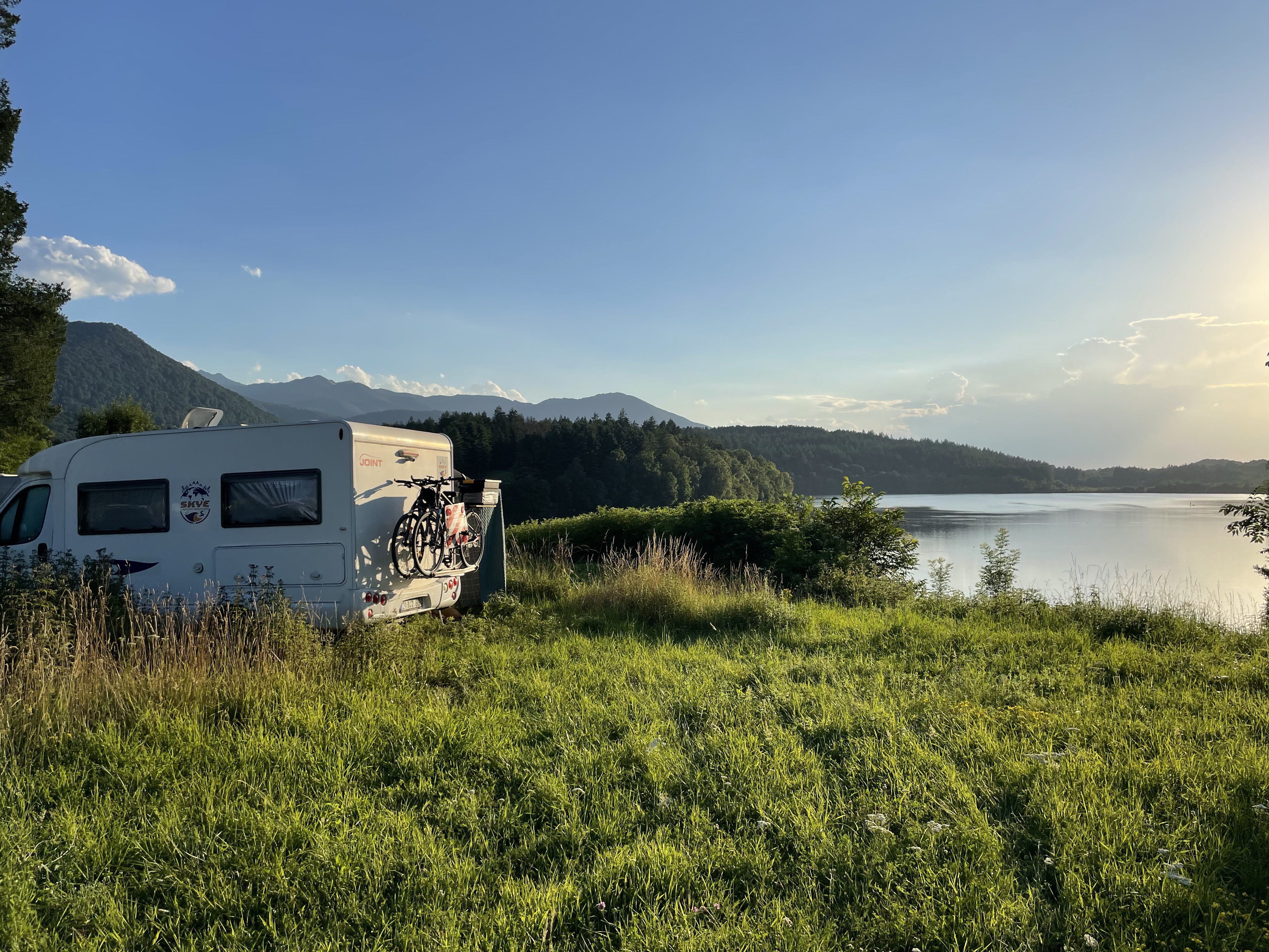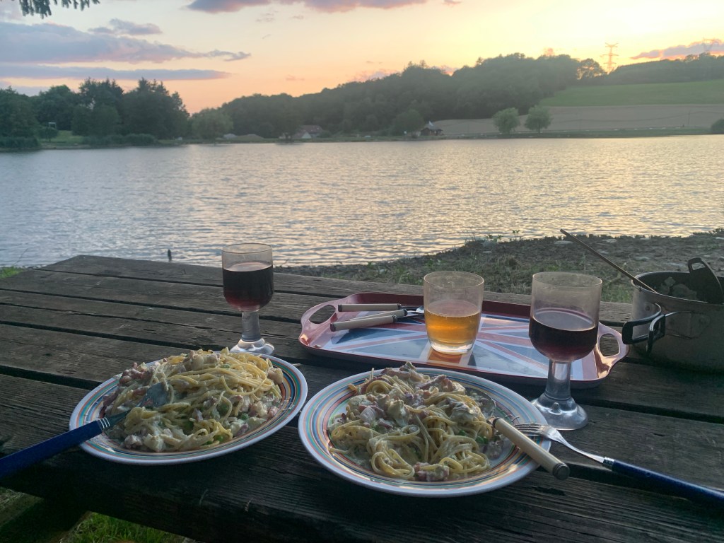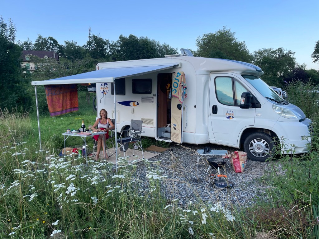By then, we were pretty shattered, so headed back towards Arromanches, but on a stunning evening we parked Skye up in a field above the town with wonderful views looking east across Gold and Juno beaches at low tide and enjoyed a very relaxed, sunny evening to take in such a hectic few days.