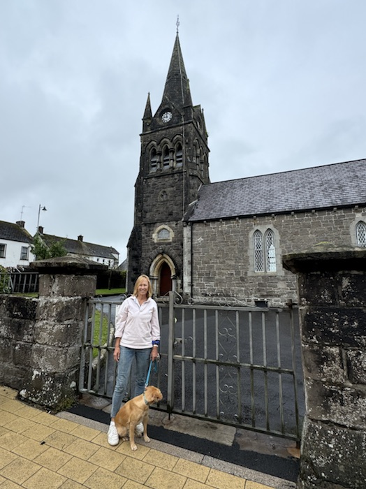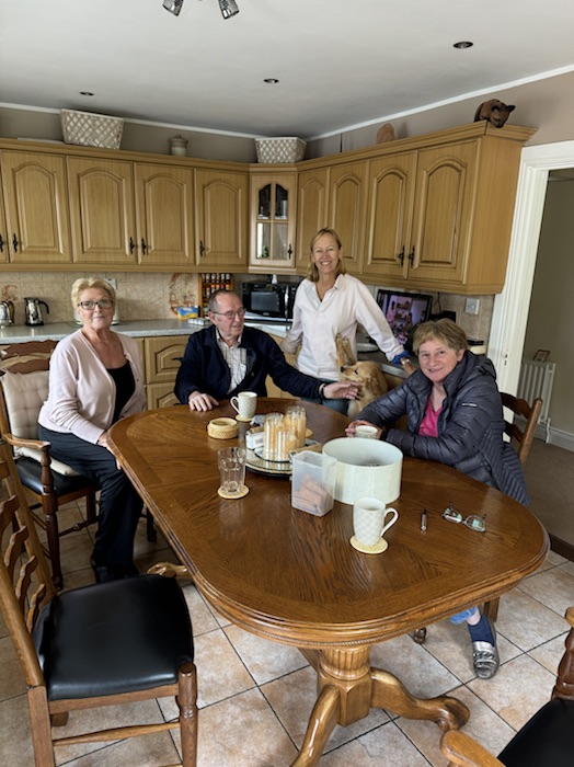 The reason that I was invited back to Baron sur Odon to talk about my Great Uncle was because I made a connection with the village and its Maire, M Georges Laignel, five years ago in 2019 when I arranged a gathering of 45 of Uncle Ron’s direct descendants in Normandy to commemorate the 75th Anniversary of his death. The village has a very special connection with Uncle Ron and, extraordinarily, there is a plaque commemorating him on both the village church and at the farm where he was killed and a picture of him in full uniform still hangs in the Maire’s office behind his desk. I visited the village again in 2020 post covid, when I re-traced Uncle Ron’s escape route by cycling 1800km down France for a military charity (Veterans with Dogs) following the route in his extraordinary escape diary which you can read here …. a great read!