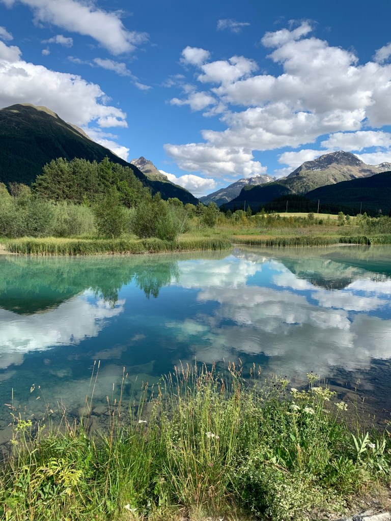 I was in a dilemma: I really wanted to take a detour to spend some time in St Moritz but I really did not want to be reckless and take on the Swiss mountain passes unnecessarily. What to do? I know – put the question out to the nice people on the Motorhomefun forum and see what they thought! The answer was a resounding âGo for it, girlâ so, with my heart in my mouth, I pointed Gloria in the direction of St Moritz and her first mountain pass. My eyes were resolutely glued to the road during the heart-stopping hair-raising hairpins, as I couldnât bring myself to look over the edge and see how far it was to the valley. I took my time, pulled over plenty to let the faster cars through and…… found that I actually quite enjoyed the whole experience! The scenery was utterly breathtaking and the engineering of the roads, tunnels and bridges was worth every cent of that vignette. I stopped for lunch beside a gorgeous lake (oh, the joy of just being able to stop and open the fridge and make lunch!) which was when I realised that it was the first time that I had really breathed. There was one more pass to go which was the steepest one yet before descending down to the Engadine lake plateau, a stunning plateau at 1800m that has four large lakes, one of which is St Moritz. The beauty of the plateau has inspired many poets and artists and it’s clear why, as the combination of snow-capped peaks, emerald green water and chocolate-box pretty Swiss chalets and hotels is unrivalled.
