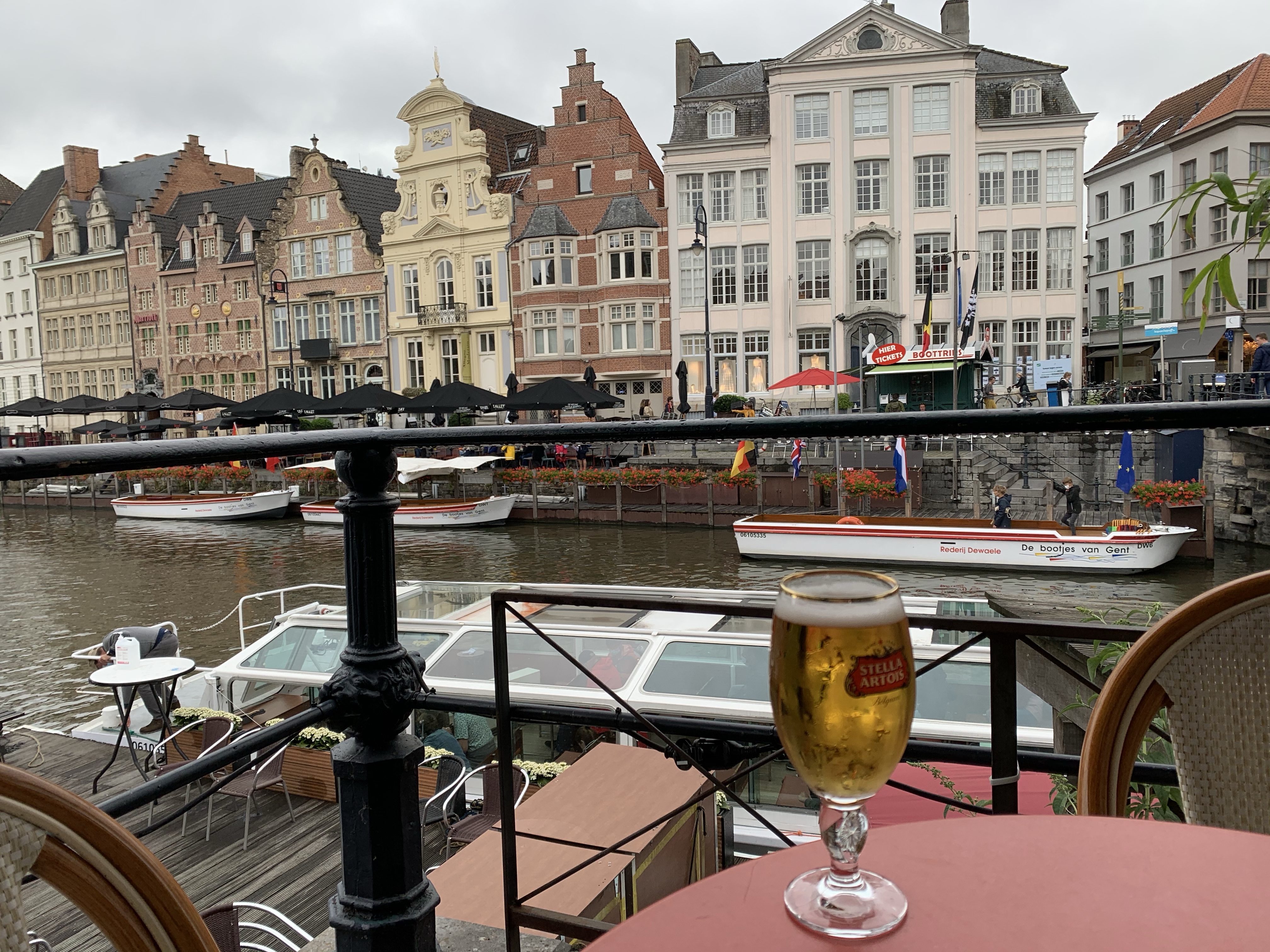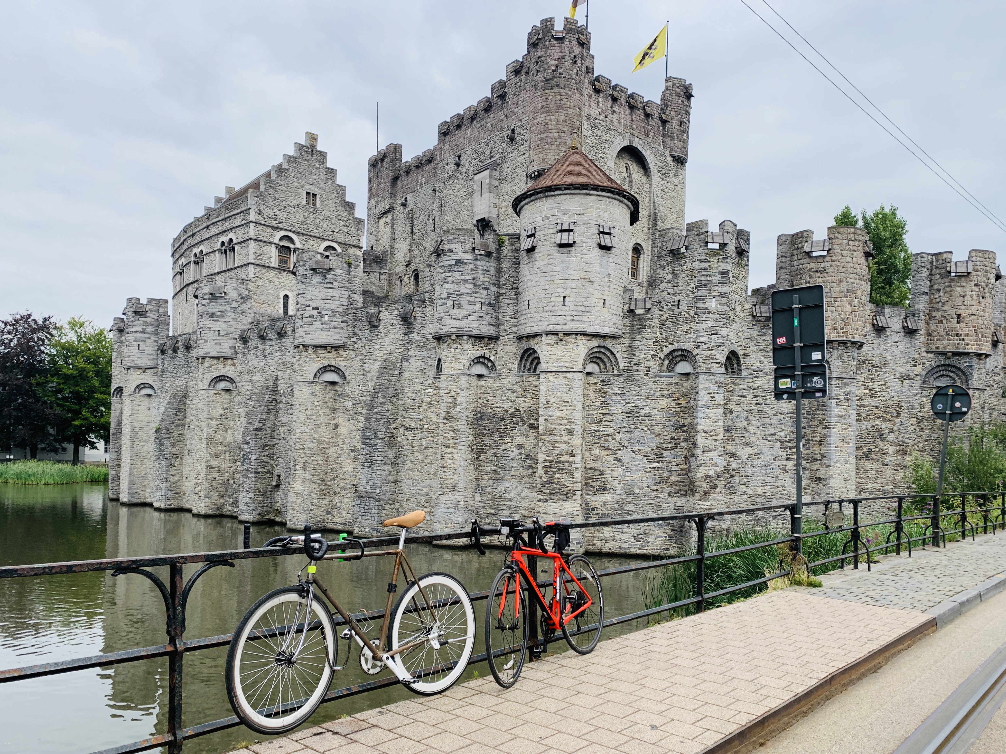 First stop on this roadtrip is Ghent, also known as “the Venice of the north”. It is beautiful and especially good to explore by bike, as most of the canals are lined by small lanes or bike paths. The architecture is stunning with plenty of old characterful houses, as so much of the city’s medieval architecture has remained intact. Gravensteen, which sits between two branches of the Lys river, was my first castle of the trip (castles are my new obsession, along with bike rides, so it was lovely to be able to combine the two!). A beer looking out over to the castle was a good way to finish up the bike ride…..