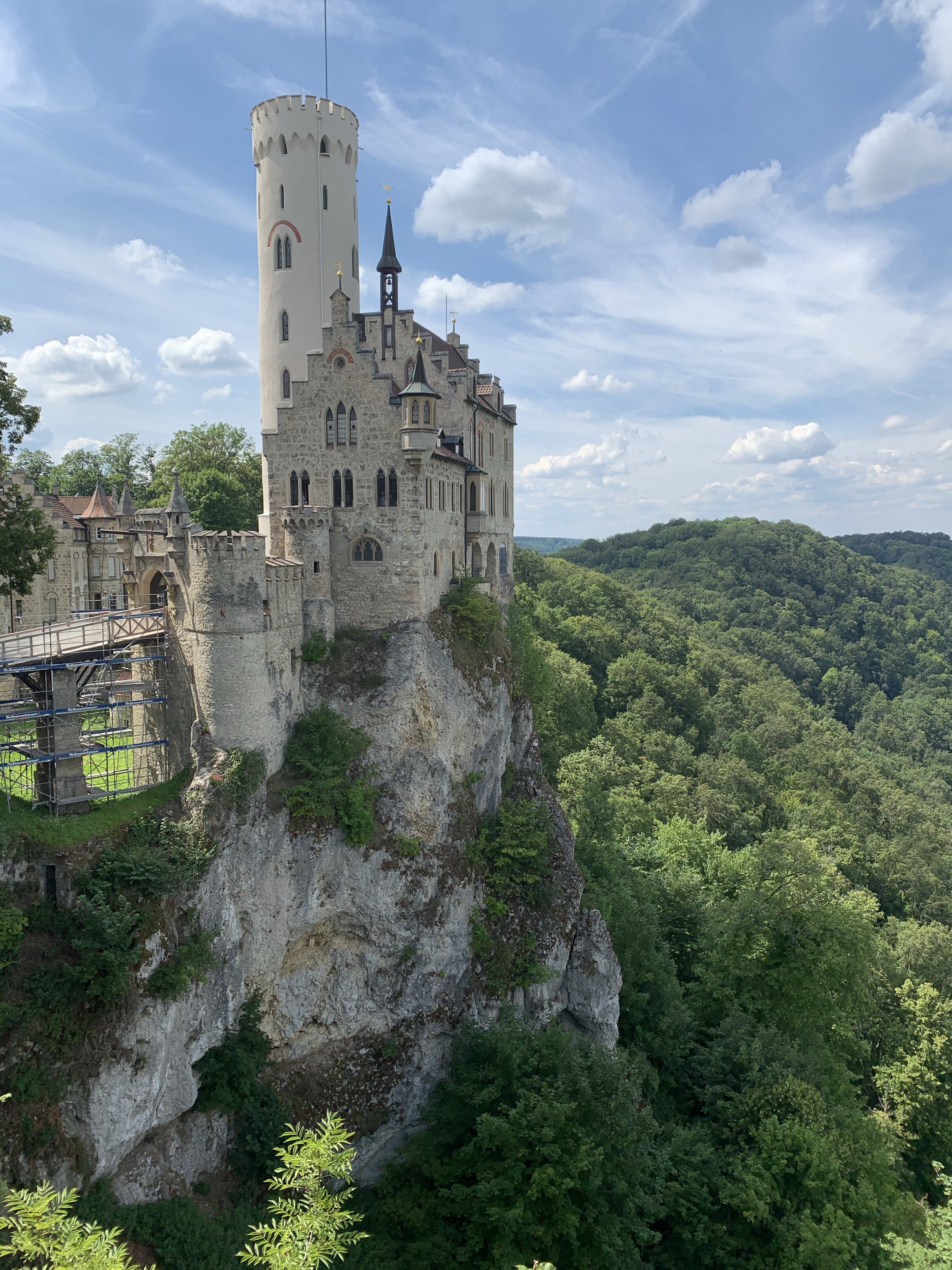 Next stop…..a Schloss that is also a Burg (confused? – so am I!). This one is Lichtenstein, meaning “light stone” (obvious, really!) and not to be confused with the country of Liechtenstein (but that will come). The first car park was full, so I managed to tuck Gloria into the very last parking spot in a lower car park (to be fair, it probably wasn’t even a parking spot, but we were the biggest thing in the car park, so no one was going to argue!) and had a lovely walk up the hill through wildflower meadows and woodlands containing 11 superb zipline and high obstacle courses (right up my street but sadly not enough time). The views from the castle were spectacular, however seeing inside was an interesting experience as I thought that I would be able to wander around at leisure, but it turned out that it could only be viewed on a tour. I was the only non-German-speaking visitor marooned on a fully German tour and I was trapped!! Fortunately, the (ridiculous) face mask meant that no one was fully aware of the expression of boredom on my face!
