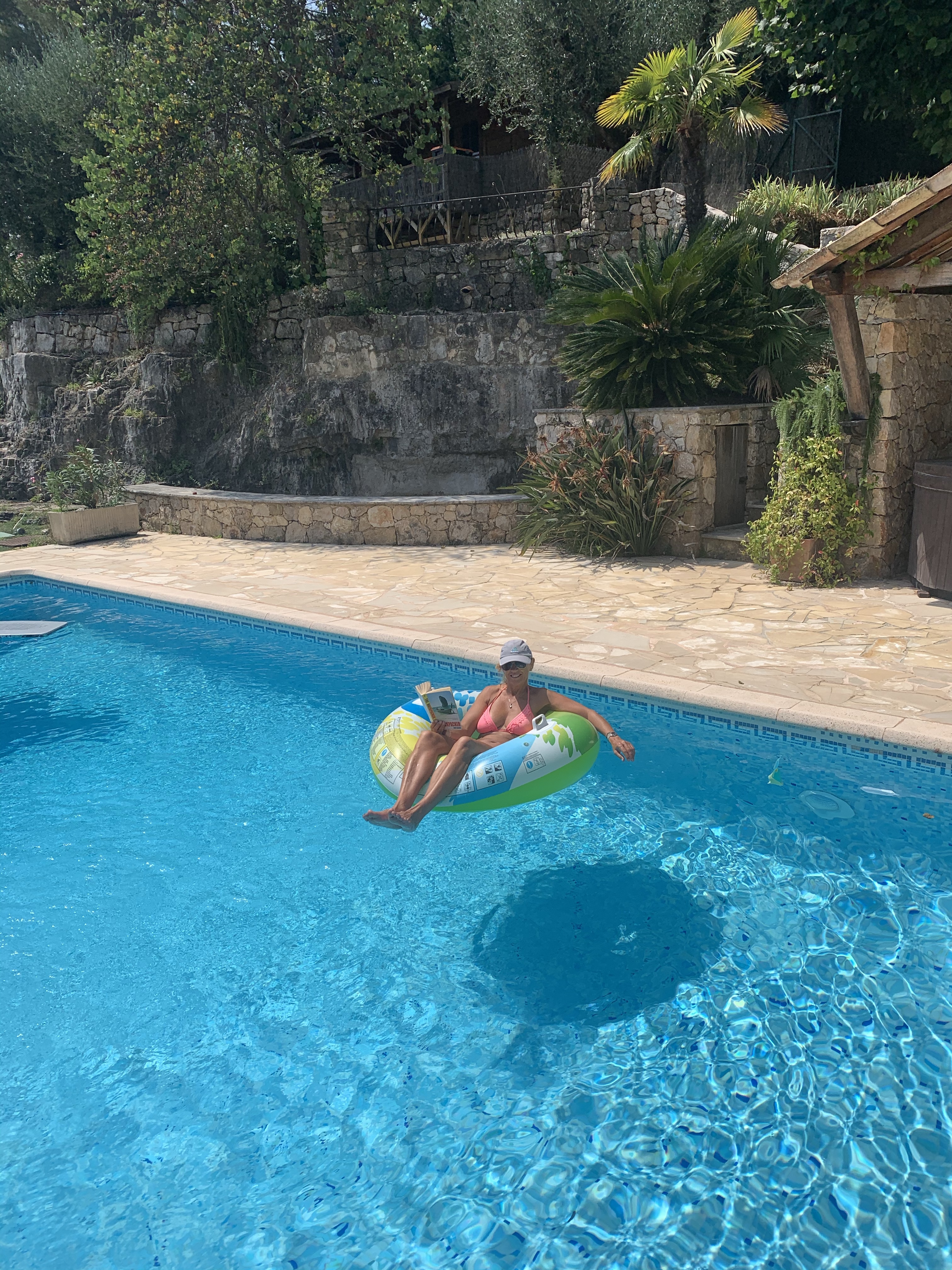 It turns out that Absinthe isnât the best way to start jobhunting, so itâs lucky that weâd organised to visit my Virgin pilot friend Andy, last seen in May 2019 at the end of our Airbus330 course. Little did he know that Iâd actually take him up on his offer of visiting his family at their beautiful home near Nice and we had so much fun playing with his 4 year old âmini meâ and dogs in the pool. While the kids enjoyed the comfort of Gloria, I was treated to Airbus Andyâs sumptuous spare room with the most incredible view down to the French Riviera – and, not only was the view incredible, it was such a treat to sleep in a proper comfortable bed after 2 and a half weeks on the road (sorry Glo, you are comfortable, but there was no comparison!!). Definitely a 5 out of 5 on Tripadvisor, Airbus Andy!!