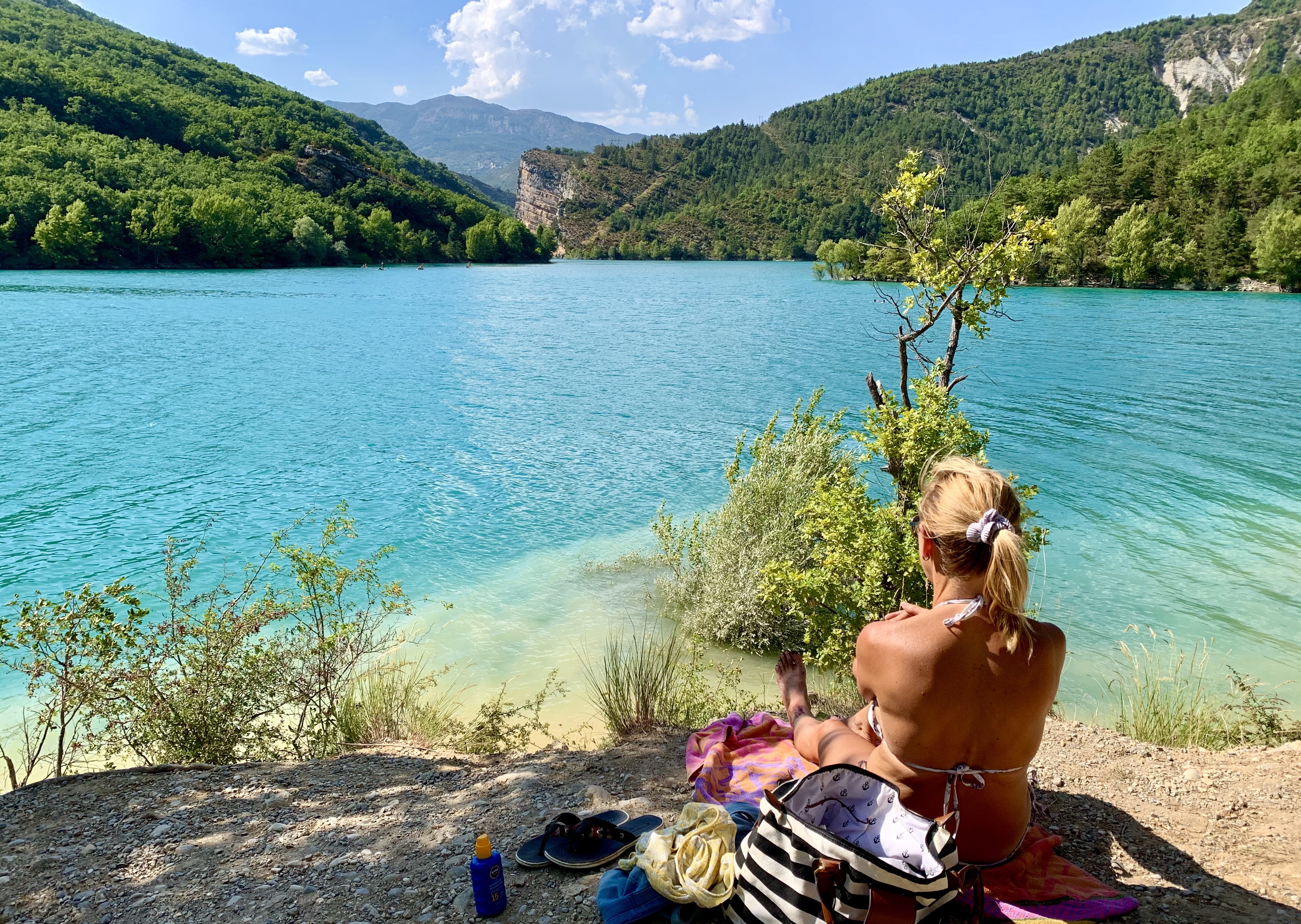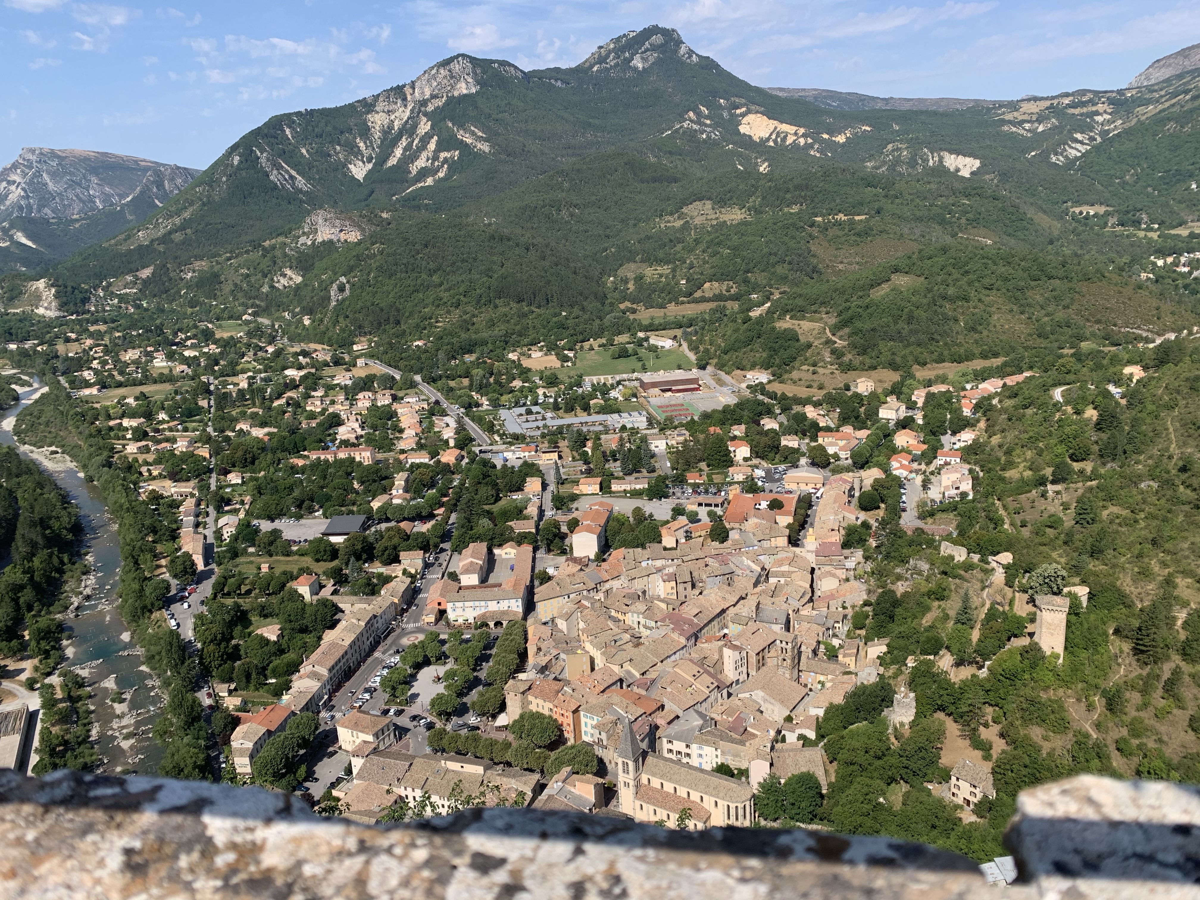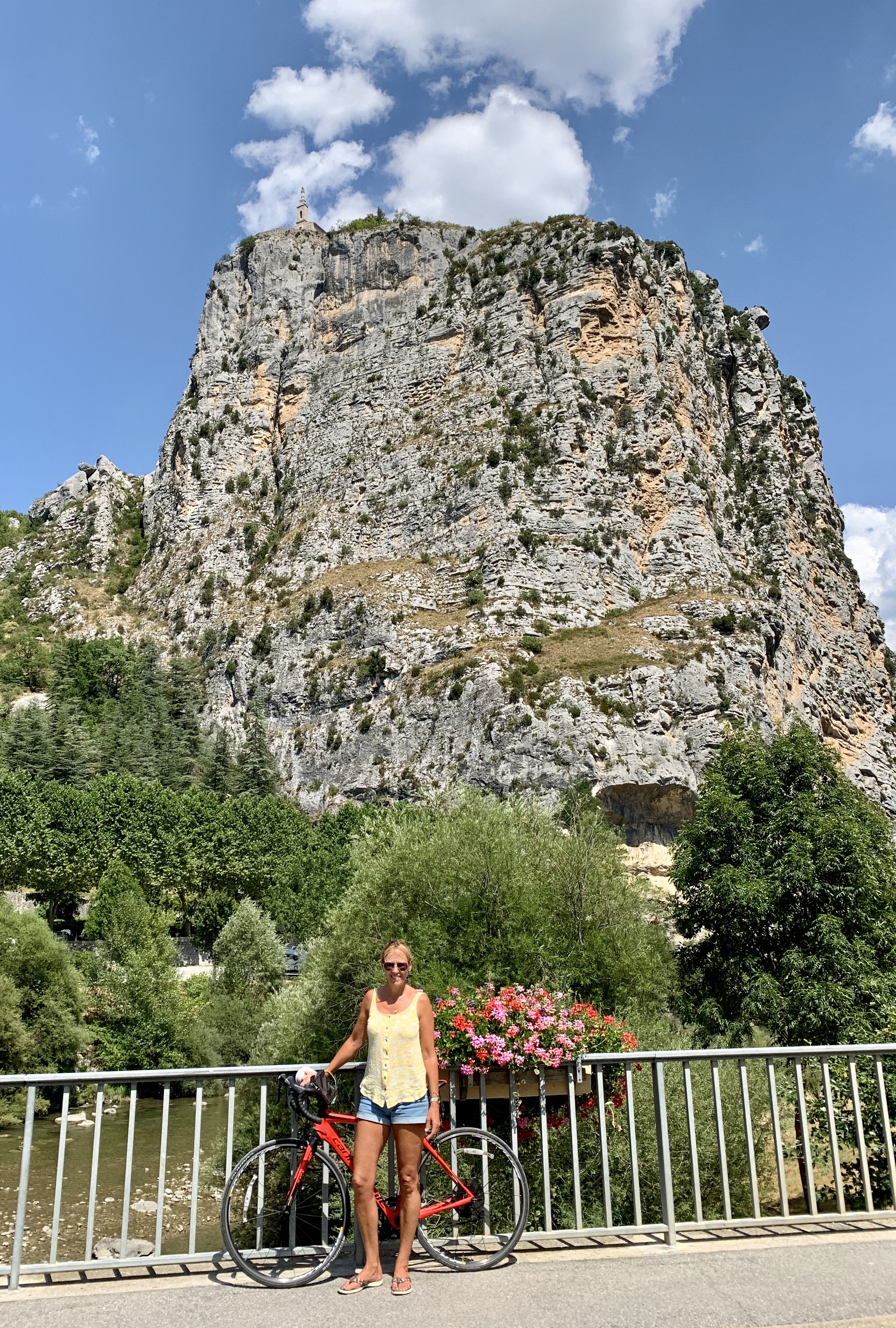 There followed more âexcitingâ driving along the Route Napoleon until we reached Castellane, a village in the shadow of a huge rock topped by a monastery. The three of us were joined by Airbus Andy and Mini me for one night and we all enjoyed a bike ride to and a paddle in the river the following day.