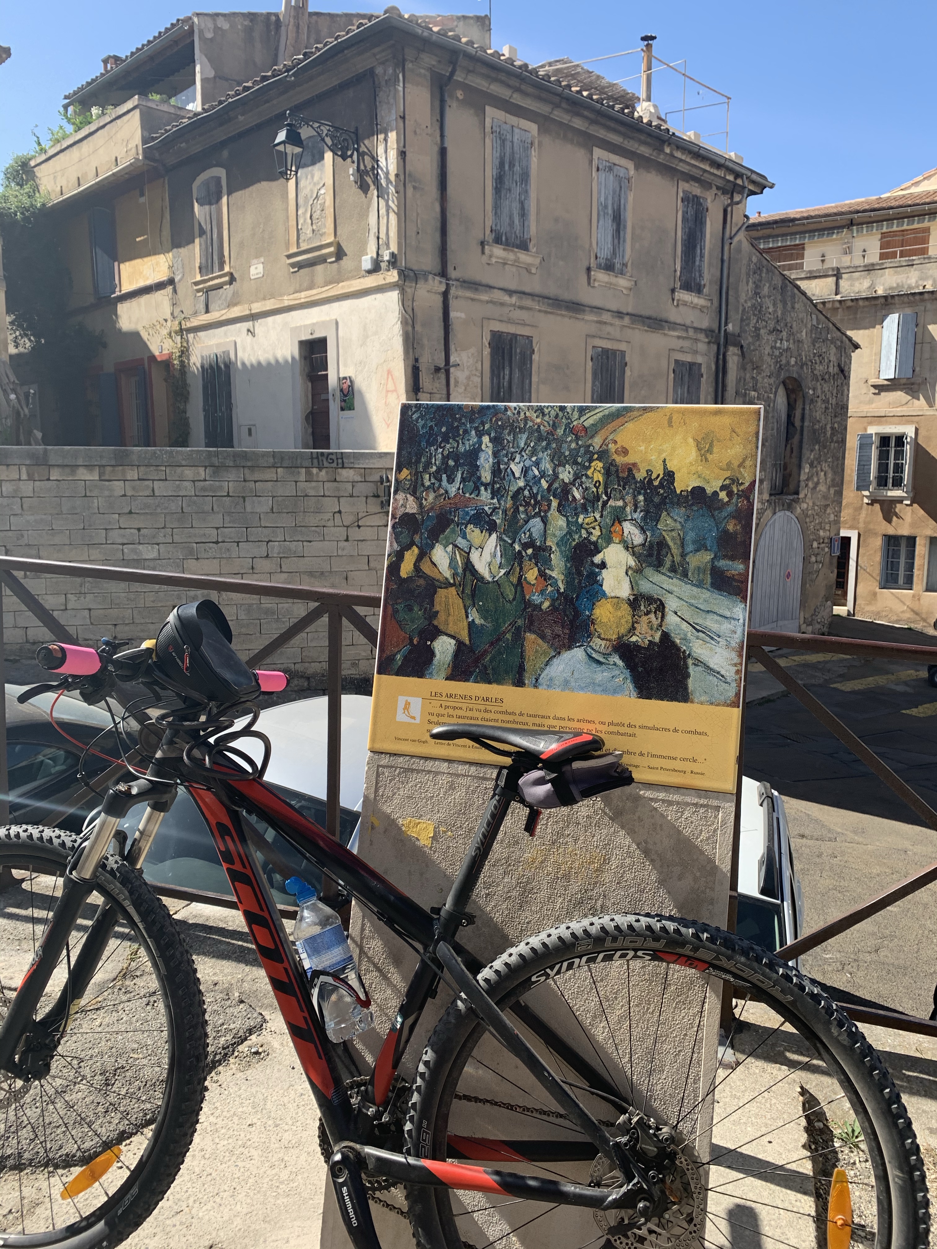 Just north of the salt flats is the old medieval town of Arles, full of Roman ruins and picturesque spots that are like a magnet to famous painters. It turns out that Vincent van Gogh spent 14 months here back in 1888/9 and in that time he completed 300 paintings – the guy was prolific!. Not being your typical tourist, I didnât fancy signing up for the Segway tour, but instead enjoyed a couple of hours completing my own treasure hunt by bike, trying to find the 10 paintings that have been put in spots where he regularly painted around the city. (Okay, so sometimes cheating when I spotted the Segways homing in on one!). In the process, I took in most of the extremely impressive Roman ruinsâŚâŚjust my kind of sightseeing!