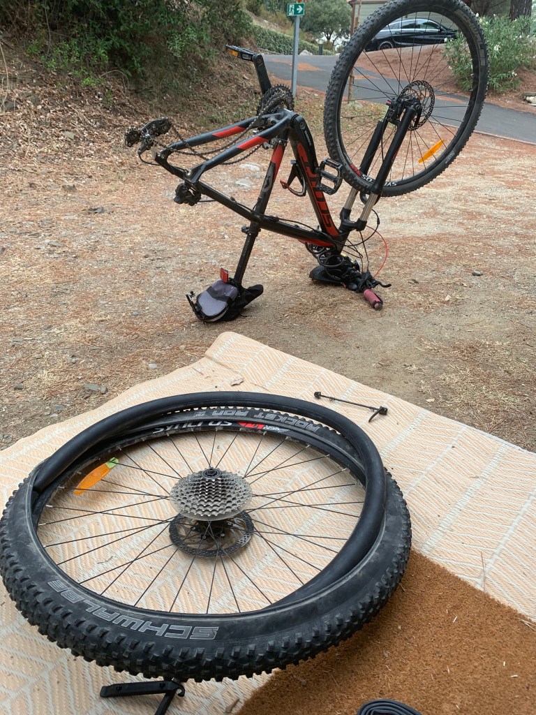 Having been delivered by my red wine saviours, I got on with replacing the inner tubes – and it was only when I had got them both out that I realised my spares are for my road bike (was the vin rouge âtastingâ responsible for this oversight??). Rookie error #3: bring lots of spare inner tubes!